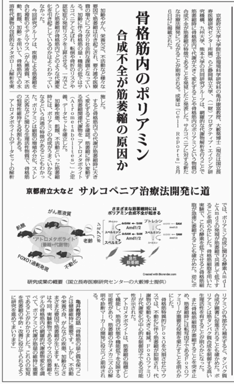 演題名「筋萎縮関連代謝産物「アトロメタボライト」の統合的メタボローム解析による同定とポリアミンによる筋量制御機構」